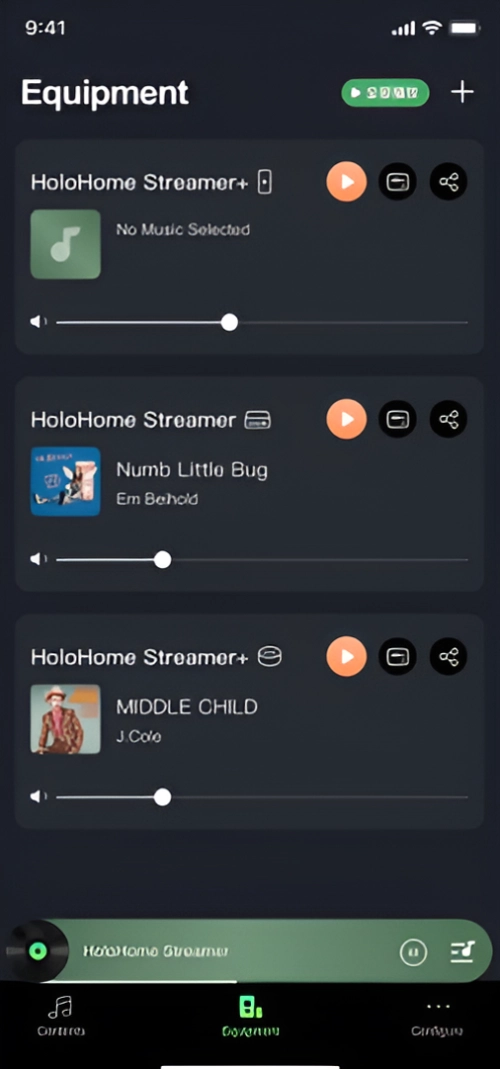 Настройте свою многокомнатную звуковую панель за считанные секунды с помощью приложения Holohome. Подключите устройство к вашей сети, просто введя имя и пароль вашей сети Wi-Fi через BLE (Bluetooth Low Energy). Это быстро и просто — всё делается в мгновение ока!